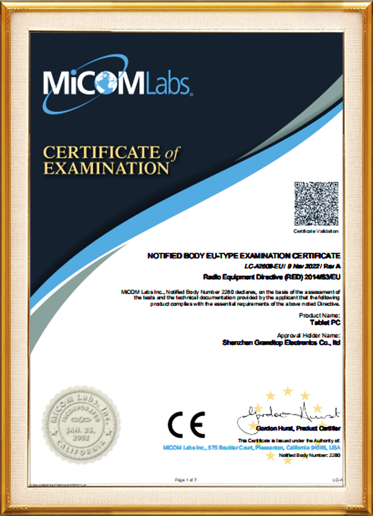 2022德国ACTIMI平板CE证书